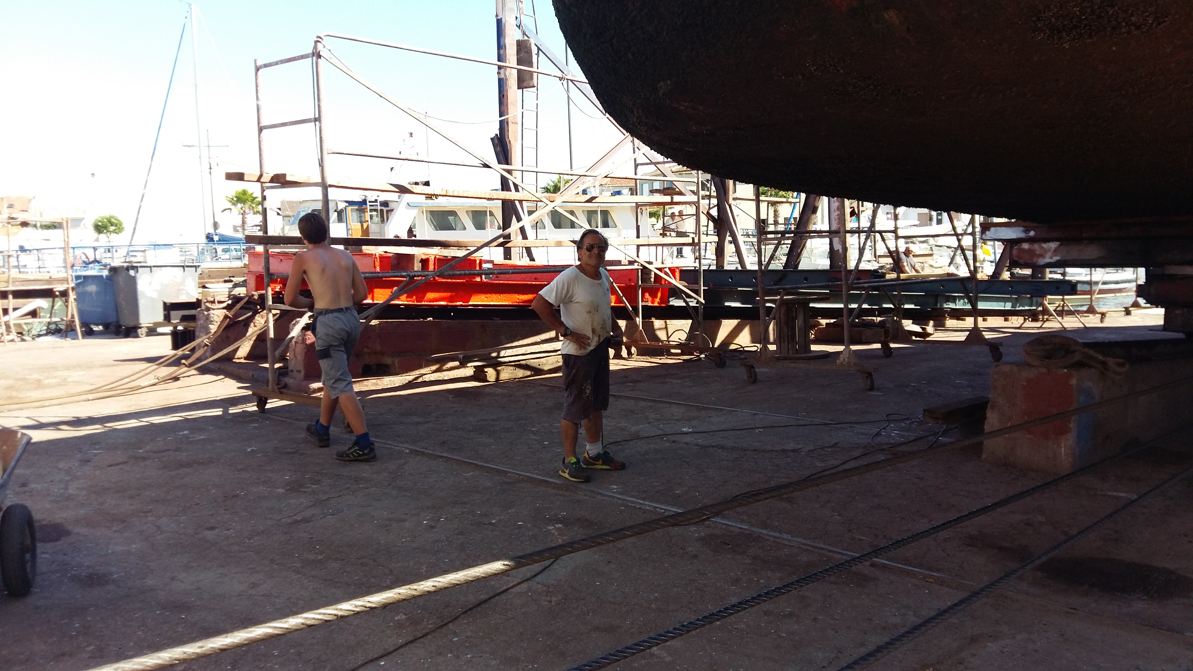 Le Tiki III est un bateau typique à roue, utilisé pour découvrir le coeur de la Camargue. Présent sur le chantier pour effectuer un un carénage qui consiste en une la série d'opérations de révision périodique de la coque d'un navire en vue de lui redonner ses qualités nautiques (vitesse), ainsi que dans le cas d'une coque métallique de limiter la corrosion. Il comporte le nettoyage de la coque sous la ligne de flottaison, généralement le décapage des restes d'antifouling et la remise en peinture.
