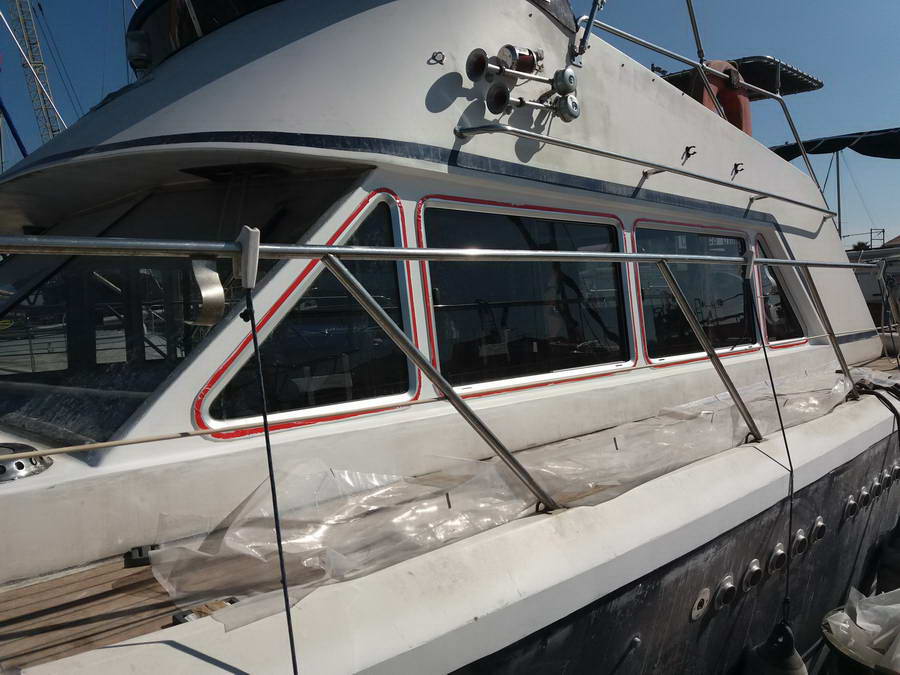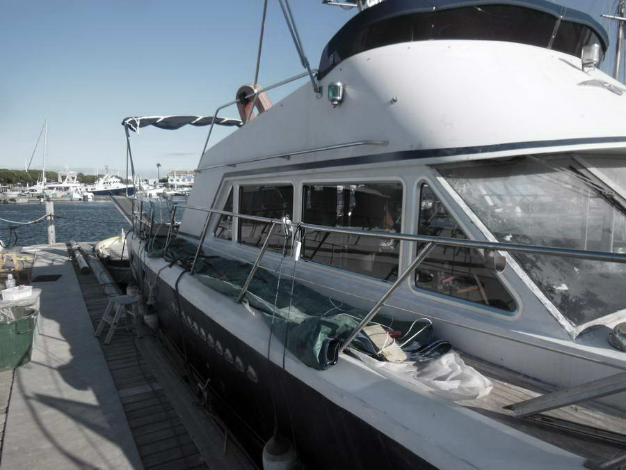 La principale difficulté a été d'adapter les supports de montage aux nouvelles vitres de la "Lady". Les habillages intérieur ont été modifiés. Un petit carénage et là voilà repartie avec une seconde jeunesse.
